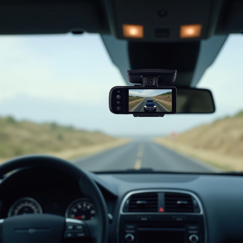 1. قم بتركيب الكاميرا الأمامية على الزجاج الأمامي باستخدام حامل الشفط أو اللصاقة.