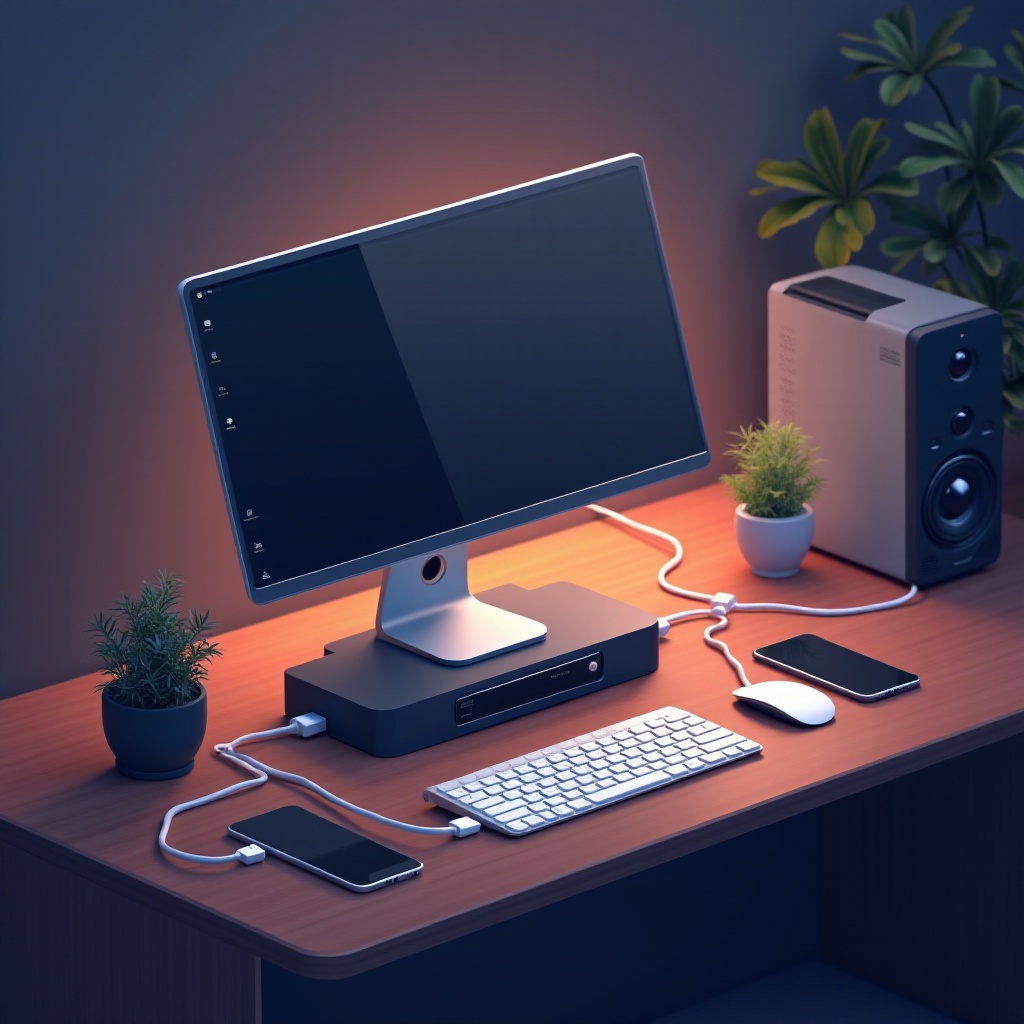 - تستخدم محطات الإرساء السلكية كابلات فيزيائية مثل USB أو Thunderbolt، معروفة بالاستقرار ولكن يمكن أن تؤدي إلى مساحة عمل مزدحمة.